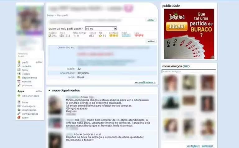 Os depoimentos no Orkut eram uma forma de homenagear amigos publicamente, uma prática que reforçava os laços sociais na plataforma.