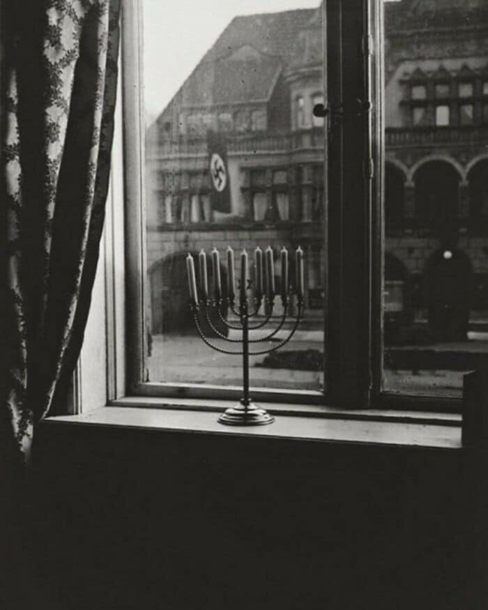 #9 Um menorá de Hanukkah judaico desafia a suástica nazista, 1931.