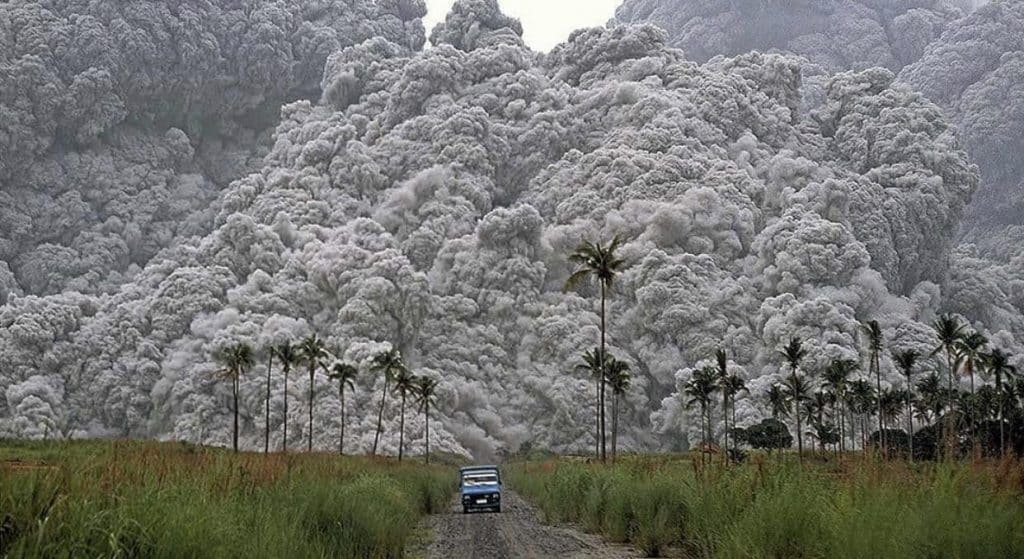 04 – Um carro tenta escapar do fluxo piroclástico da erupção do Monte Pinatubo