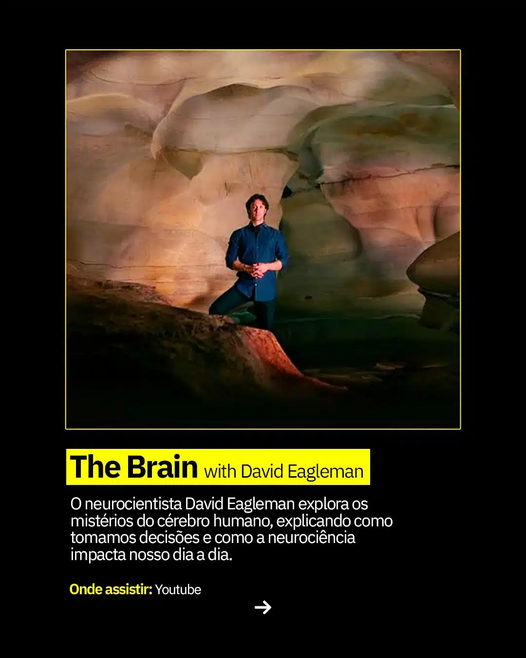 Nesta série disponível no YouTube, o neurocientista David Eagleman nos guia por uma exploração profunda do cérebro humano, desvendando como ele molda nossa realidade, pensamentos e experiências.
