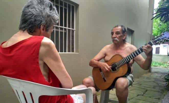 Com o violão, ele costuma cantar músicas do folclore pampeano – pertencente à cultura sulista— e clássicos do sertanejo, como Joâo de Barro, uma das preferidas de Yanel. “São músicas que sei que ela sempre gostou”, explica Lúcio.