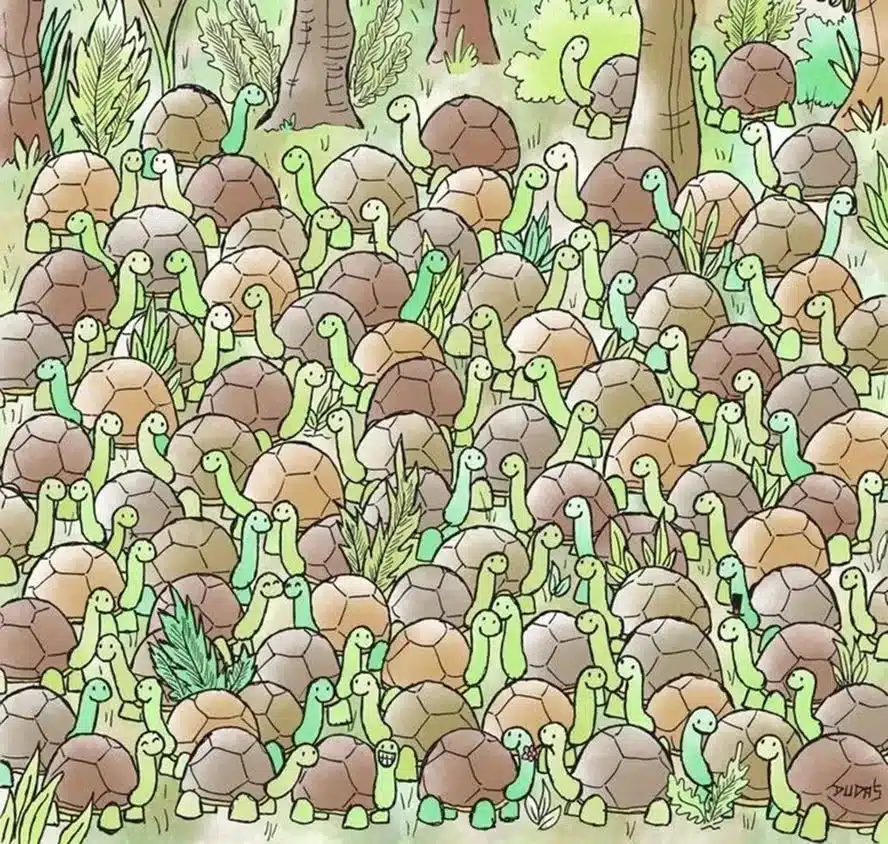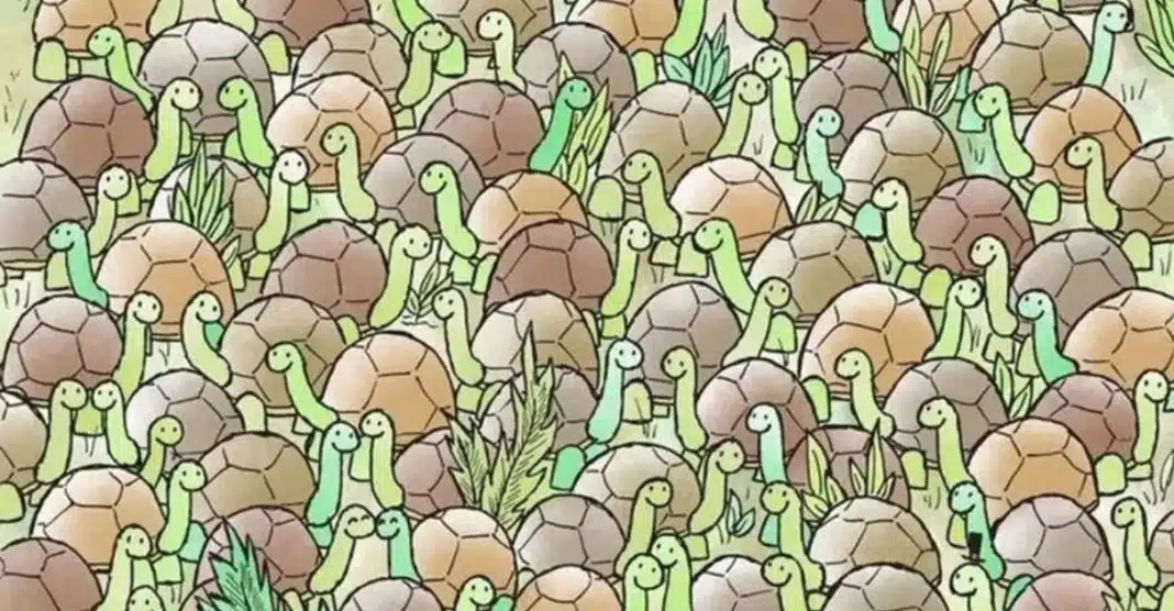 No post compartilhado no subreddit r/FTheSniper, o usuário escreveu: “Encontre a cobra nesta esperta ilusão de ótica.” O desafio é simples: entre várias tartarugas, há uma cobra disfarçada. Será que você consegue encontrá-la?