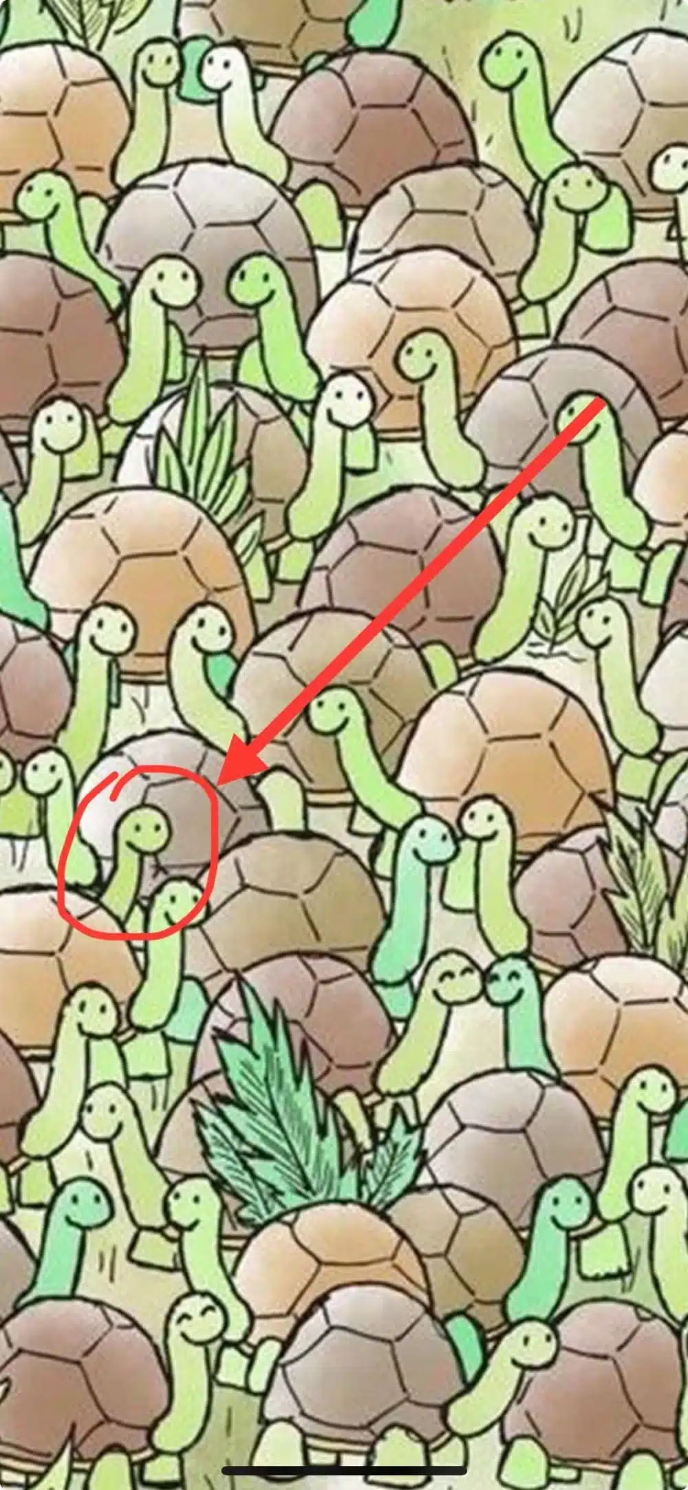 Um usuário comentou: “Eu não consigo. Continuo olhando para a tartaruga sorridente com todos os dentes.” Outro acrescentou: “Ainda não achei, mas a energia do cara sorridente no centro é contagiante.”