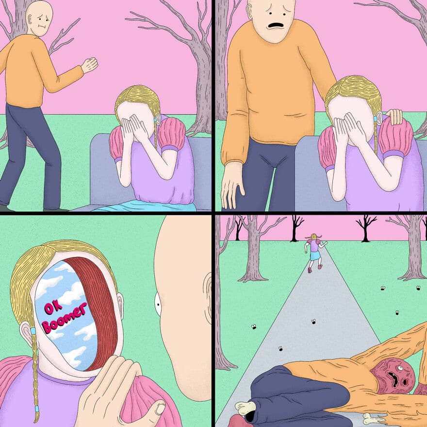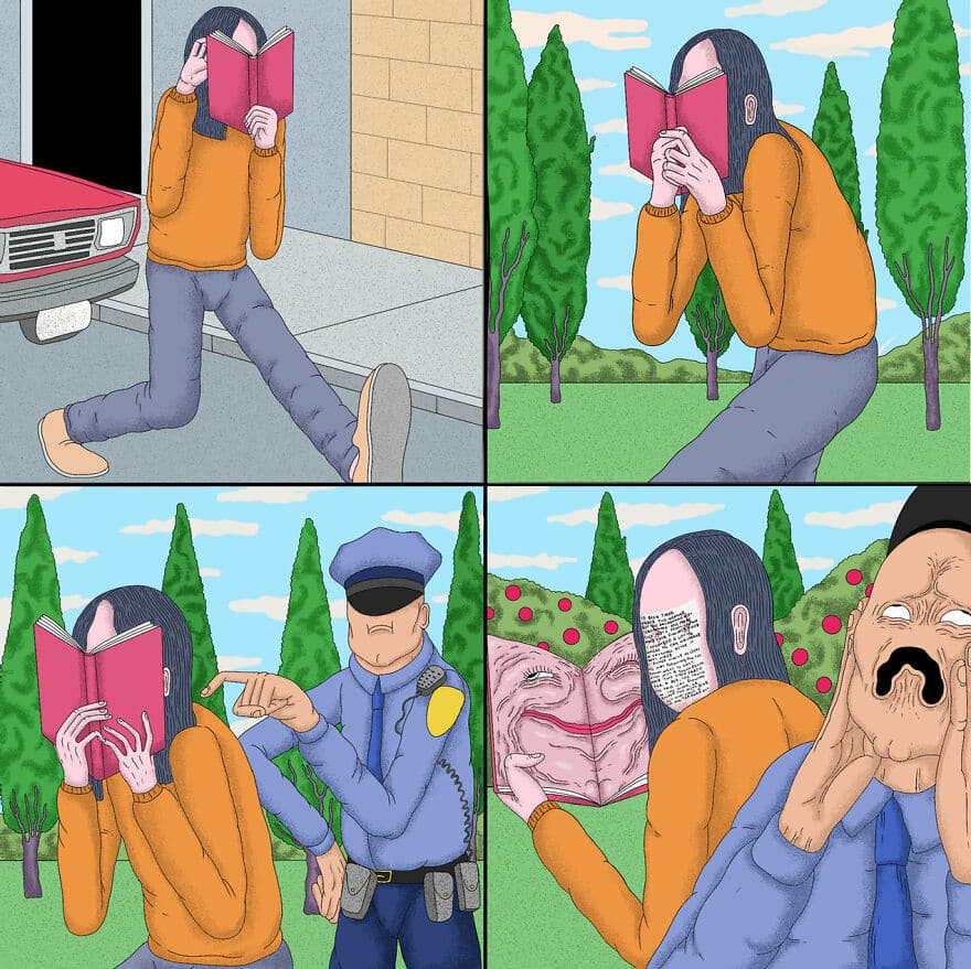 Existem milhões de quadrinhos que ilustram momentos felizes de amor, as queixas do dia-a-dia, fatias da vida e temas geralmente saudáveis. Mas existem muito poucos que são tão bizarros, aleatórios, ridiculamente engraçados e completamente autênticos como os que Alex Gamsu Jenkins faz. As coisas que ele cria são tão originais que não podem ser confundidas com as de ninguém.