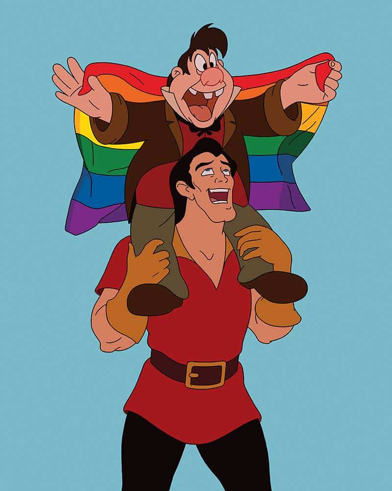 Sem palavras Fonte: Facebook / TomWardStudioCharmoso! Fonte: Facebook / TomWardStudioNem todas as ilustrações de Tom são perturbadoras – Tom explica que, embora goste de cada peça por diferentes motivos, ele adora a ‘alegria de Gaston e LeFou no orgulho gay’, onde LaFou é visto segurando uma bandeira LGBT acima de sua cabeça enquanto se senta nos ombros de Gastão. Fonte: Facebook / TomWardStudio