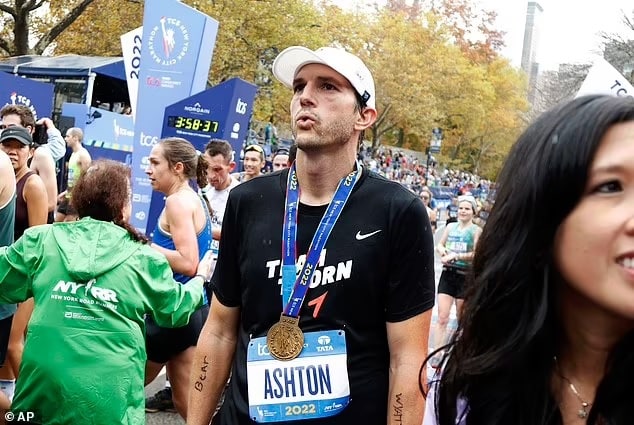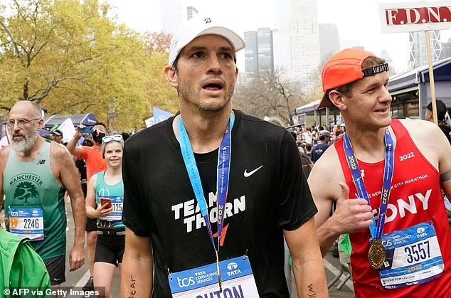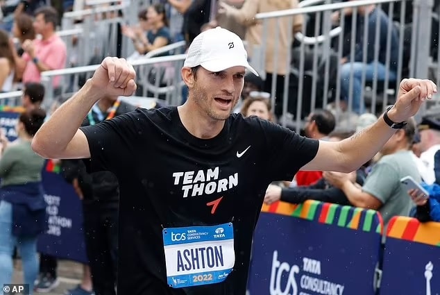 O ator Ashton Kutcher, de 44 anos, deu um suspiro de alívio ao cruzar a linha de chegada na Maratona de Nova York 2022.