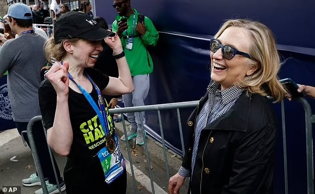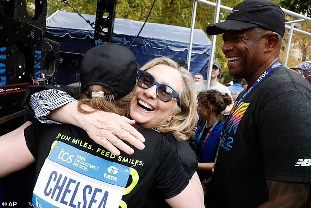 A apresentadora Gutsy foi recebida no final da corrida por sua mãe radiante, a ex-secretária de Estado Hilary Clinton.
