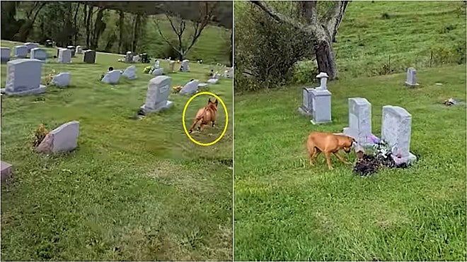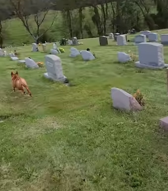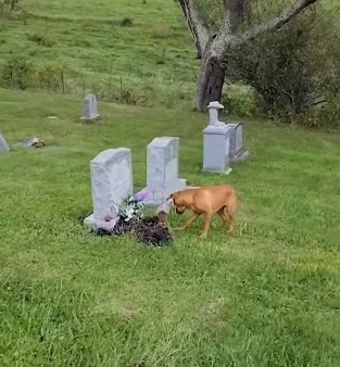O filho da idosa se chama Joshua e toda vez que ele vai ao cemitério para visitar o túmulo da mãe, o caramelo Zola sai correndo na frente para chegar no local primeiro.