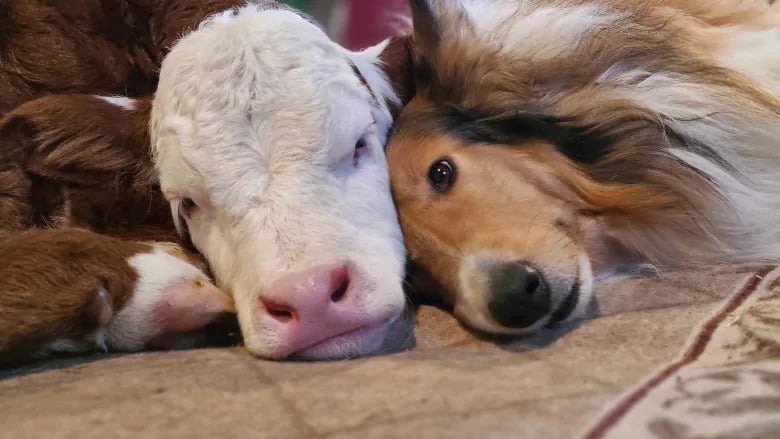 As vacas bebês, assim como os humanos bebês, passam muito tempo dormindo. “Se ela se deita no tapete, ele vem e se deita ao lado dela. Eles geralmente dormem juntos ”, disse Potoroka à CBC.