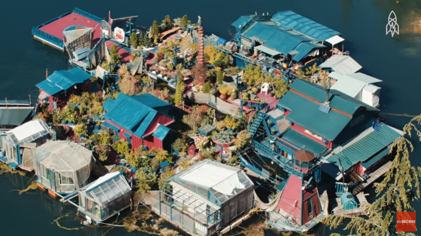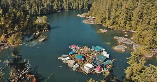 Nos últimos 29 anos, Catherine King e Wayne Adams viveram em um complexo flutuante dez milhas ao norte de Tofino, British Columbia. Eles a batizaram de Freedom Cove, uma casa sustentável construída à mão com materiais reciclados. Fica a 25 minutos da cidade mais próxima, mas você não pode chegar lá de carro.