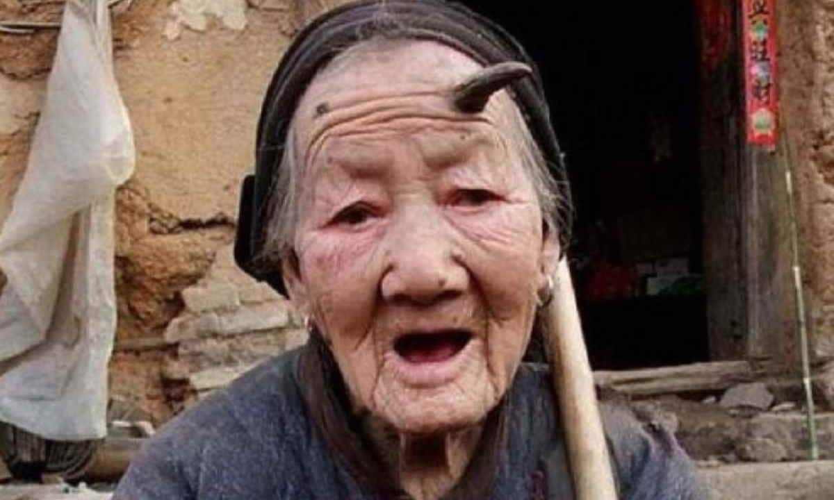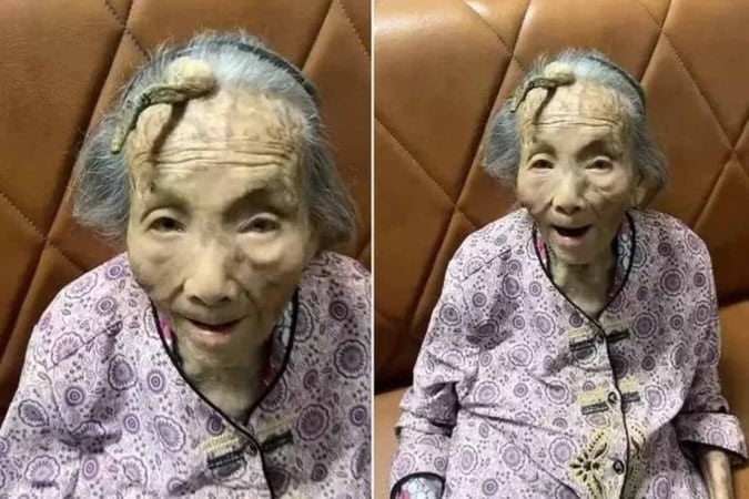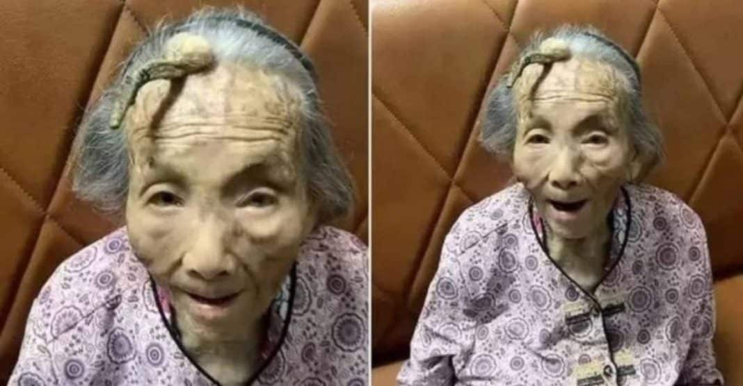 Uma mulher chinesa de 107 anos, conhecida como Chen, está chamando atenção nas redes sociais por uma condição rara e impressionante: um “chifre” de aproximadamente 10 cm que cresceu em sua testa.