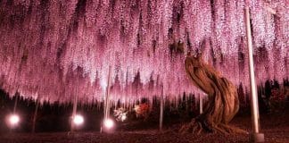 Esta glicínia de 149 anos no Japão parece uma cachoeira encantada que nunca toca o chão