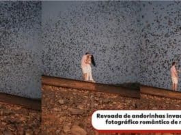Revoada de andorinhas ‘invade’ ensaio romântico de noivos e fotos surpreendem; confira
