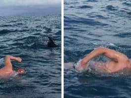 Golfinhos protegem nadador de enorme tubarão-branco que os perseguia em alto-mar [VIDEO]