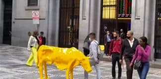 No lugar do touro, uma “vaca magra” amanheceu em frente à Bolsa de Valores de São Paulo