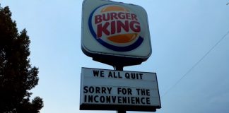 Funcionários do Burger King pedem demissão em massa e deixam recado no letreiro da loja