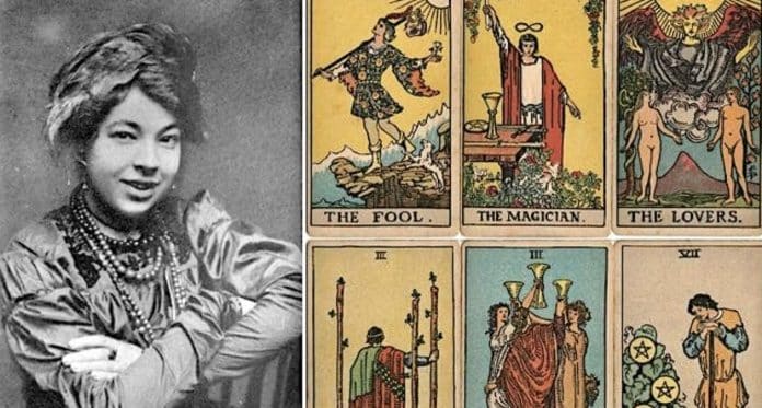 Colman-Smith – conhecida pelos amigos como “Pixie” – foi contratada pelo estudioso do ocultismo e autor Arthur E. Waite , um membro da sociedade ocultista britânica, a Ordem Hermética da Golden Dawn , para ilustrar um baralho de cartas de tarô.