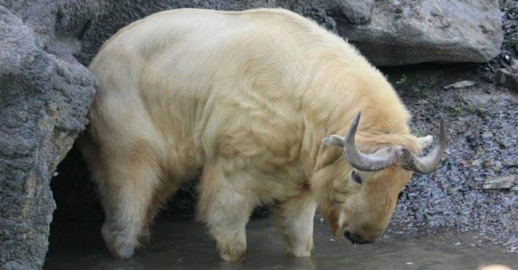 Eles chamaram esse animal de Takin, e pesa, em média, 350 quilos e habita áreas montanhosas, compartilhando território até com alguns ursos panda.