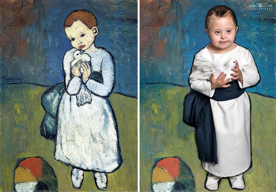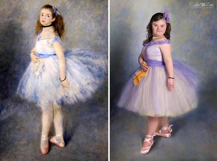 A fotógrafa albanesa Soela Zani dá uma nova vida ao indivíduo com Síndrome de Down, recriando as pinturas mais famosas, e tem sido uma grande conquista.