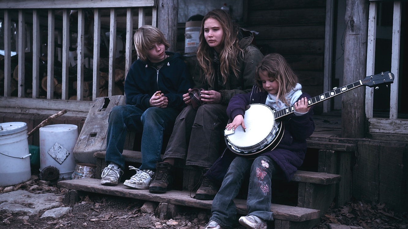 Quando Ree ensina os irmãos a caçar ou a atirar, o filme não trata isso como brincadeira de coragem juvenil: é uma aula de sobrevivência. Ela precisa garantir que, se algo acontecer com ela, aquelas duas crianças tenham algum recurso para não serem engolidas pelo entorno.