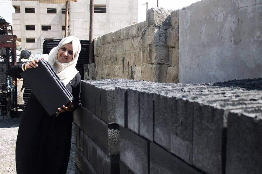 Usando materiais que Gaza possui em abundância – entulho de edifícios destruídos em guerras sucessivas e cinzas de aquecimento, cozinha e geração de energia – o bloco é visto como útil tanto para a reconstrução quanto para transmitir um senso de dignidade e desenvoltura entre os habitantes de Gaza.