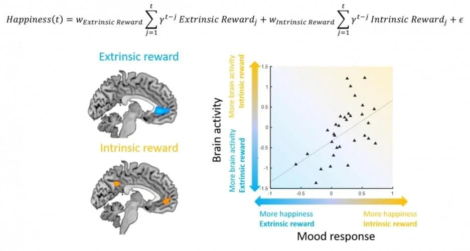 A equipe de pesquisa desenvolveu uma equação matemática para determinar o quanto as recompensas intrínsecas e extrínsecas contribuíram para o humor dos participantes em um determinado momento.