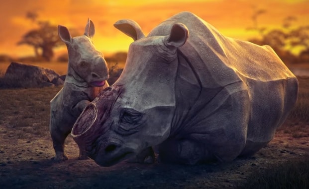 De repente, homens assustadores com olhos brilhantes e sinistros aparecem no vídeo, trazendo com eles a maldição da destruição. As focas os avistam primeiro – ‘os tigres se aproximando’ e eles ficam apavorados com essas figuras demoníacas. Impiedosamente, eles rompem o gelo e pousam nas calotas polares. Nas florestas, eles dirigem seu jipe pelo terreno acidentado e apontam sua arma para a mamãe rinoceronte, disparando-a com um som tão “suave como um trovão”. É muito triste quando você vê como esses humanos vêm e destroem a natureza sem piedade.
