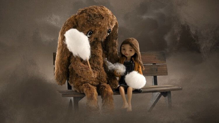 Quando percebemos que não podemos continuar lutando contra a realidade, algo dentro de nós se rompe e o primeiro impulso é nos agarrar ainda mais ao passado, mesmo que ele não exista mais, simplesmente porque o futuro nos causa pânico. Então encontramos abrigo em momentos felizes. Na verdade, não é por acaso que nessa fase de curta, o ursinho seja maior do que a criança, o que revela que ele é a sua fonte de segurança.