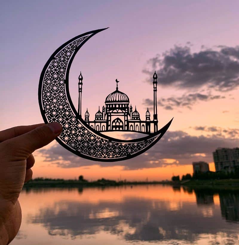 Kanat posiciona cada recorte na frente do céu, edifícios, flores ou qualquer outra coisa que se encaixe com o desenho na folha e tira uma foto deles.