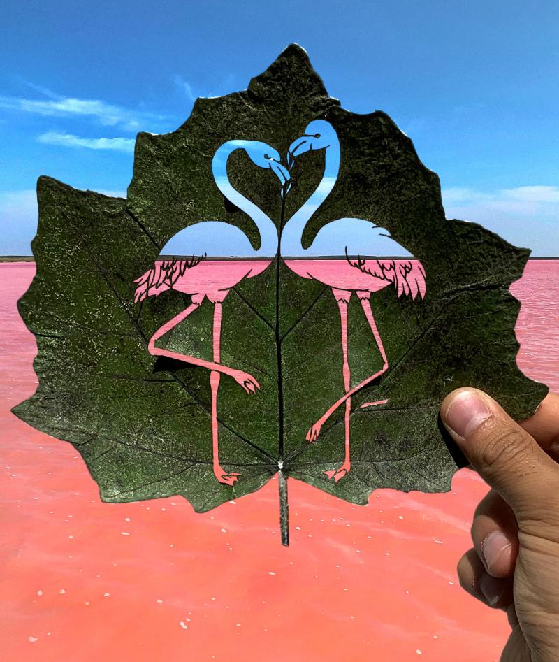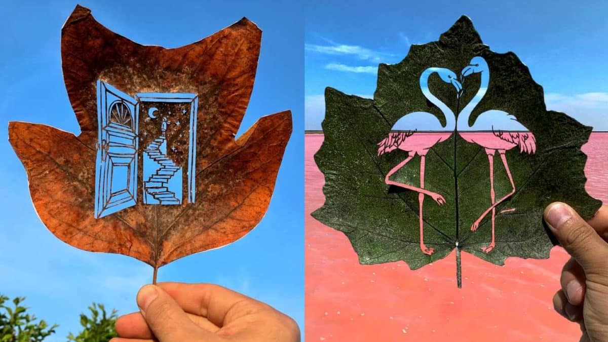 Um homem transforma a natureza em arte com seus intrincados recortes de folhas, apresentando desde bailarinas a flamingos e Harry Potter.