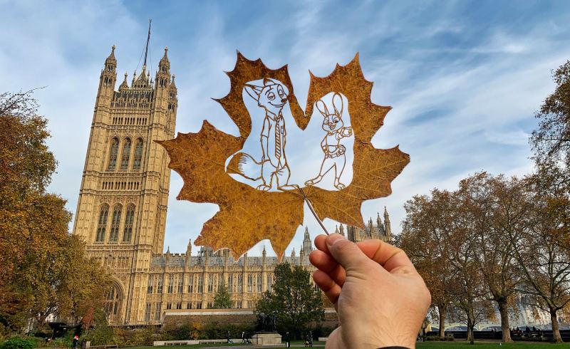 Kanat Nurtazin, de 29 anos, usa uma navalha afiada para cortar seus desenhos em folhas, e sua arte única chamou a atenção da Disney.