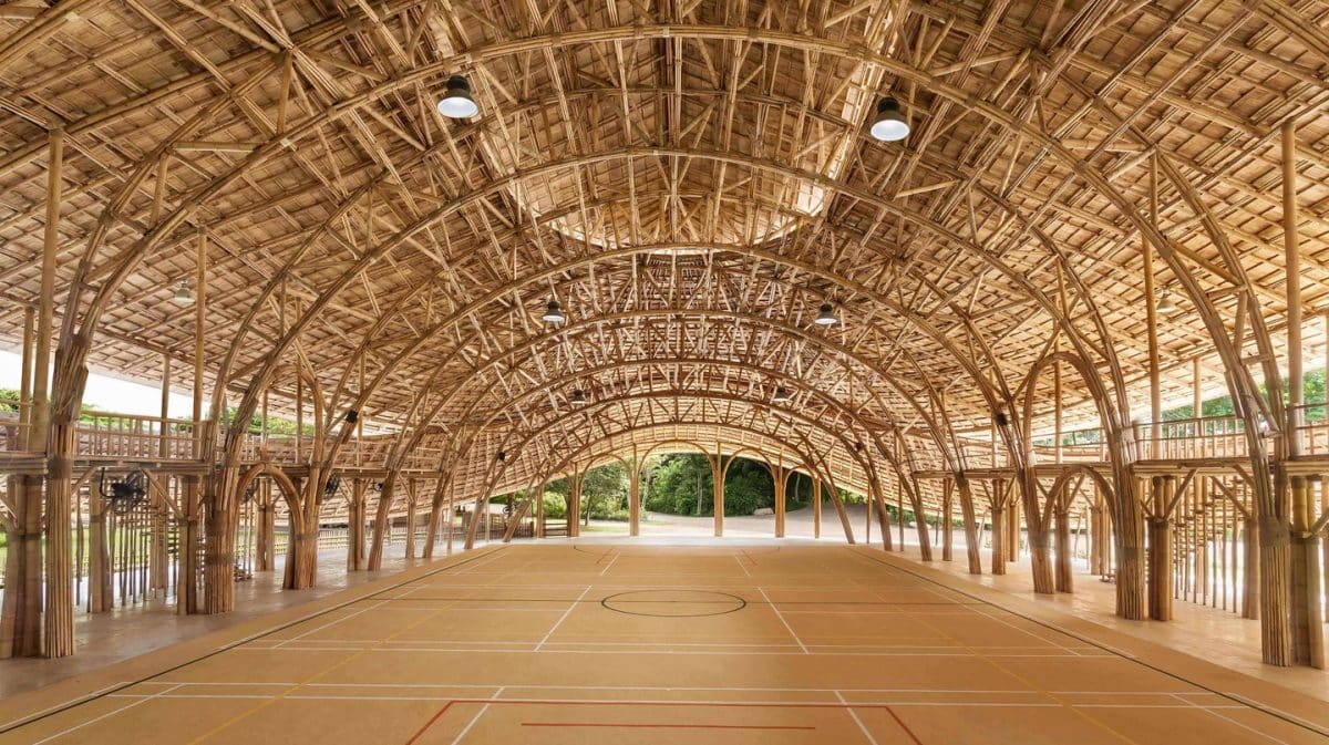 Uma escola primária holística e bilíngüe no subdistrito de Hang Dong, na Tailândia, está recebendo um pavilhão esportivo dos sonhos totalmente orgânico e feito à mão. O novo Bamboo Sports Hall para a Panyaden International School foi construído na forma de uma flor de lótus – a flor tradicional do budismo – e apresenta treliças de bambu pré-fabricadas que medem mais de 17 metros sem reforços de aço ou conexões.