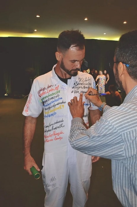 Na cerimônia de colação de grau, Vladimir estava vestido com o macacão de borracheiro – uniforme que o acompanha desde meados de 2010.