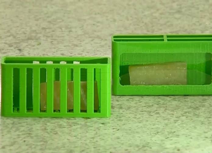 O protótipo foi confeccionado com a ajuda de uma impressora 3D do laboratório de fabricação digital (Fab Lab Escola SESI-SP). O material utilizado foi o plástico verde sustentável feito com o bagaço da cana de açúcar.