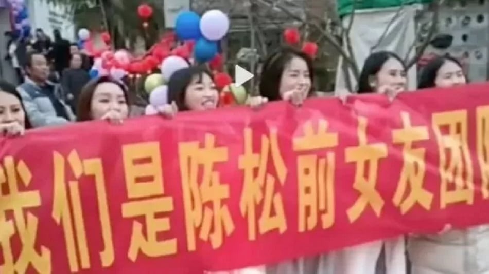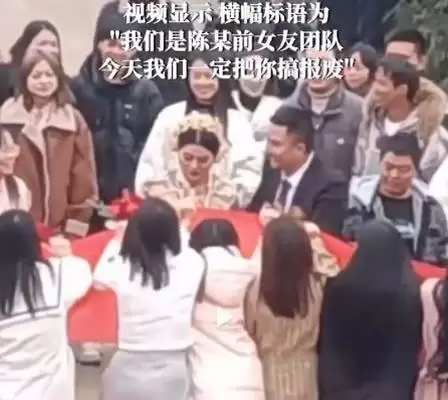 O homem, cujo sobrenome é Chen, prestes a se casar, quando, em frente ao local da cerimônia, elas ergueram uma grande faixa vermelha que dizia: “Somos o time das ex-namoradas de Chen. Hoje, vamos destruí-lo”.