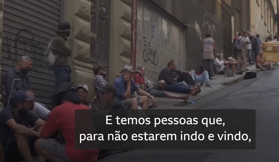 “Começaram a aparecer muitas famílias que não puderam pagar seu aluguel e terminaram vindo pra rua. E temos pessoas que, para não estarem indo e vindo, terminam ficando e dormindo nas calçadas”, disse Robson Cesar Correia, funcionário de uma ONG que atua na capital paulista.