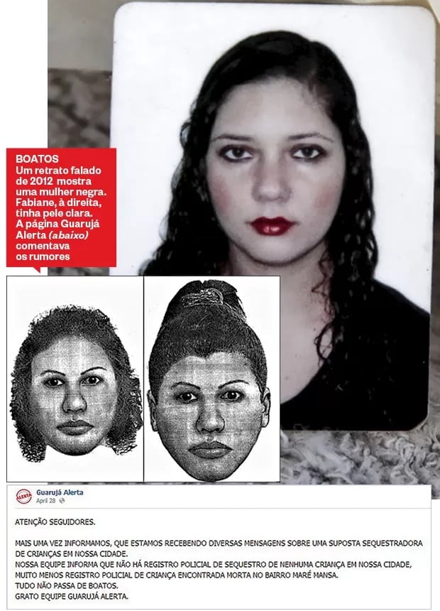 As pessoas atacaram Fabiane, que foi espancada e amarrada até vir a óbito, devido a um retrato falado da suposta sequestradora, que na verdade, era relativo a um crime cometido dois anos antes, na Zona Norte do Rio de Janeiro.