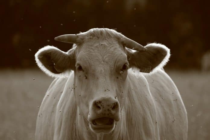 O que você vê abaixo é a imagem de uma vaca completamente coberta de mosquitos: