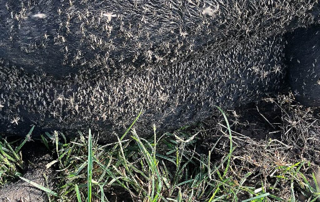 Embora esforços recentes de pulverização aérea estejam ajudando a manter a disseminação de mosquitos sob controle, os residentes e animais ainda estão lutando contra essas nuvens de insetos que aparecem repentinamente hoje.