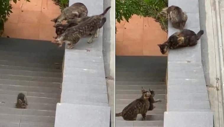 pensarcontemporaneo.com - Gatinhos se unem para resgatar filhote que ficou para trás em vídeo lindo