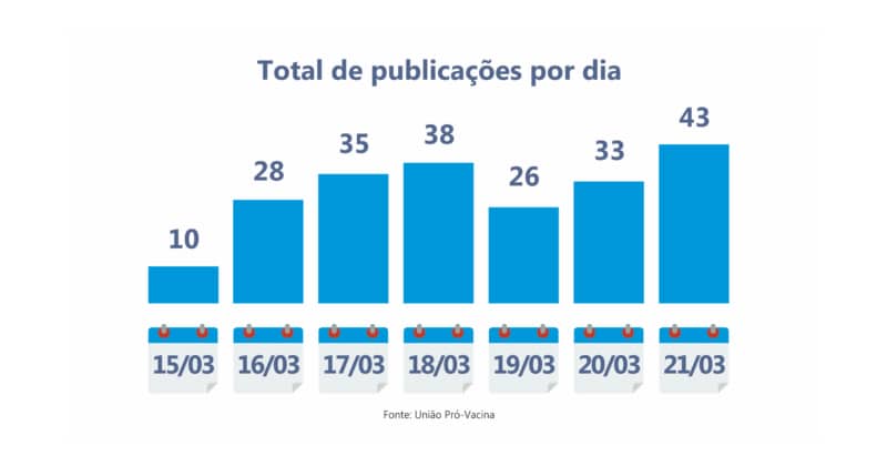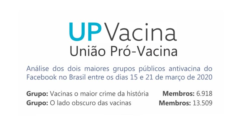 A União Pró-Vacina analisou 213 postagens feitas entre 15 e 21 de março nos dois maiores grupos públicos brasileiros de conteúdo antivacina no Facebook, O Lado Obscuro das Vacinas e Vacinas: O Maior Crime da História, que atuam há cinco e dois anos, respectivamente.