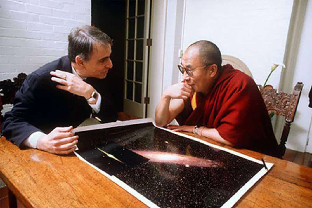 Em 1991 o Dalai Lama, líder espiritual tibetano que foi obrigado a se exilar de sua terra natal devido a opressão do governo chinês, concedeu uma entrevista a Carl Sagan, provavelmente o maior divulgador de ciência do século XX, e que também sempre demonstrou interesse genuíno pela história das religiões – particularmente as orientais.