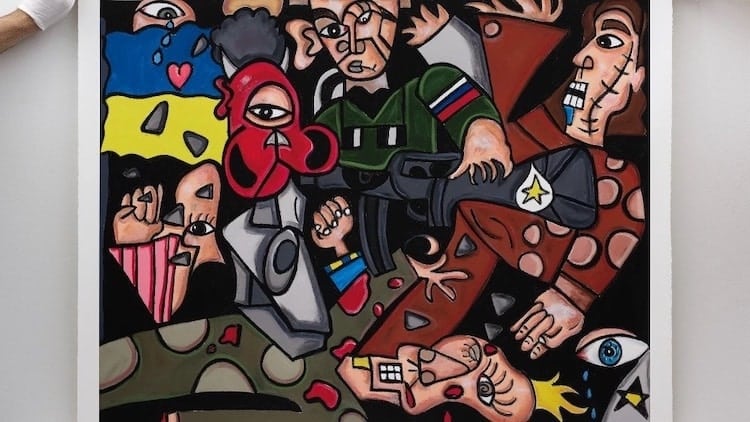 A motivação e o talento de Andrés se encontra em uma grande obra dele, intitulada Invasão da Ucrânia. O artista pintou logo após a Rússia invadir a Ucrânia em fevereiro de 2022.