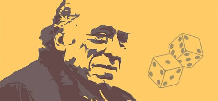 “Jogue os dados” revela um Bukowski motivador, mostrando combinações e jogos de palavras com uma forte dose de negatividade e realismo em seu conteúdo, capaz de nos guiar em um caminho possível para atingir um objetivo. Desde o início do poema, a diretriz de suas propostas não deixa margem para dúvidas e o imperativo de suceder ou fracassar na tentativa impõe-se com uma sutileza que deixa sabor às esperanças: