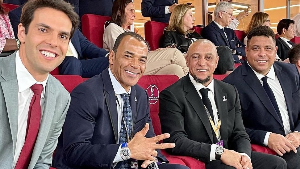 O flagra se deu no último jogo, na vitória do Brasil sobre a Suíça por 1 a 0. O que se viu foi uma torcida para lá de respeitável na tribuna de honra do estádio 974. Ninguém mais, ninguém menos que: Kaká, Ronaldo, Cafu e Roberto Carlos assistiram ao jogo juntos e viram de perto os comandados do técnico Tite nesta segunda-feira (28).