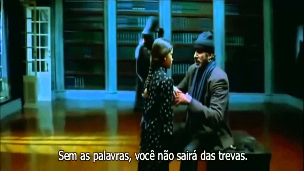 O nome do filme é uma alusão ao mundo de trevas em que a protagonista está submersa. Não apenas pela escuridão da cegueira, mas também pelo isolamento total que a menina estaria condenada a viver. É difícil imaginar condição pior de existência. No começo o filme prende pela ansiedade que provoca, a expectativa de ver a menina sendo resgatada desse inferno chega a ser dolorosa. Uma mistura de sentimentos invade quem assiste, quando quase odiamos o professor, mas ao mesmo tempo queremos defende-lo da empáfia do pai. As tragédias humanas carecem de um culpado e é difícil não escolhermos o nosso “Judas” logo de cara: o pai. Diante da situação da filha e da angustia da mãe, criar uma empatia pelo pai é quase impossível, mas necessária.
