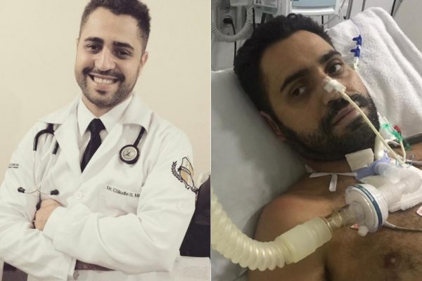 O médico Cláudio Sérgio Martins, de 32 anos, ficou 59 dias internado – 30, em coma induzido na UTI por complicações da Covid-19. Ele teve 80% do pulmão comprometido e precisou remover 45 cm do intestino delgado. “Não acredito que estou vivo”, disse o médico.