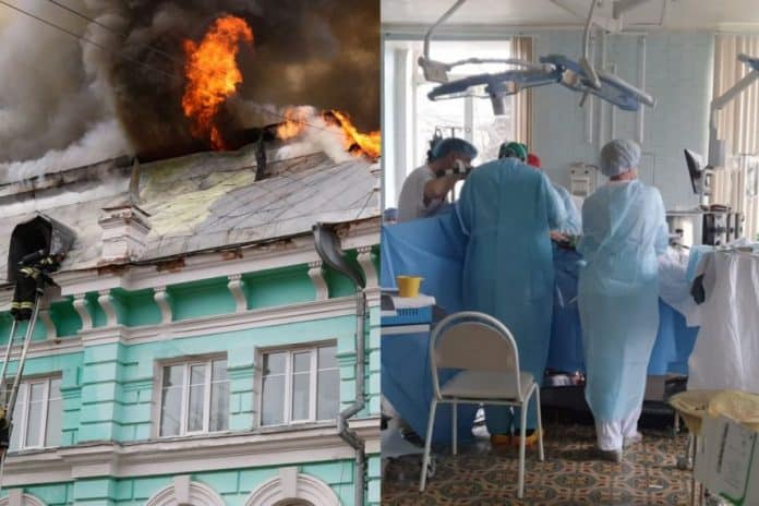 Após a operação, o paciente foi evacuado do prédio em chamas para outro hospital, acrescentou o ministério.