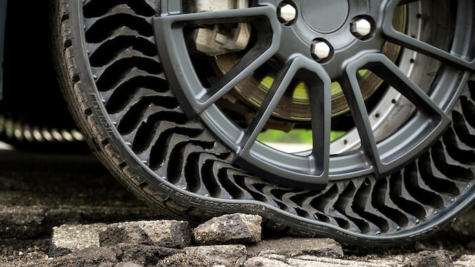 Os fabricantes revelaram uma nova geração de tecnologia de rodas sem ar, conhecida como Uptis (Unique Tire-proof Tyre System).