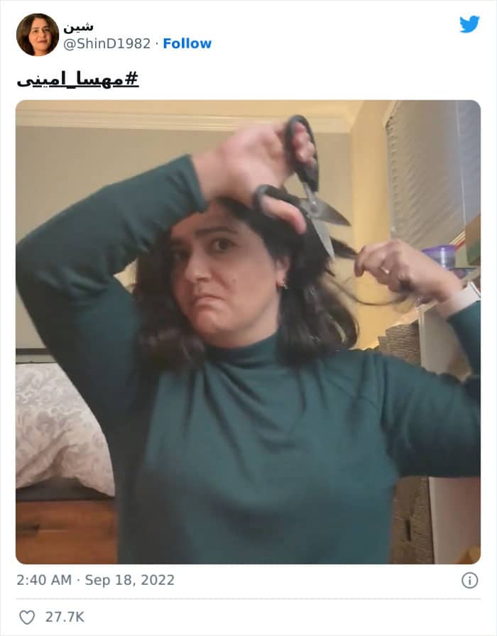As mulheres também começaram a cortar o cabelo nas ruas e compartilhar vídeos de si mesmas empunhando tesouras e arrancando impiedosamente suas longas madeixas.